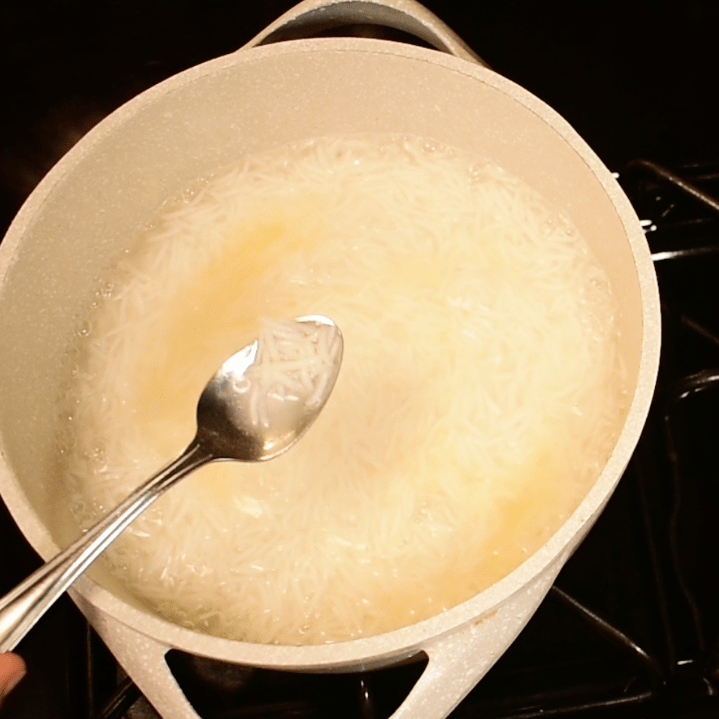 Take a pan over medium heat, add 1 tbsp oil. Once heated add mustard seeds, cumin seeds let it crackle. Then add chopped green chilies, garlic paste, asafoetida and turmeric powder. Fry for 1 min then add 1 cup water and salt. Bring it to boil.