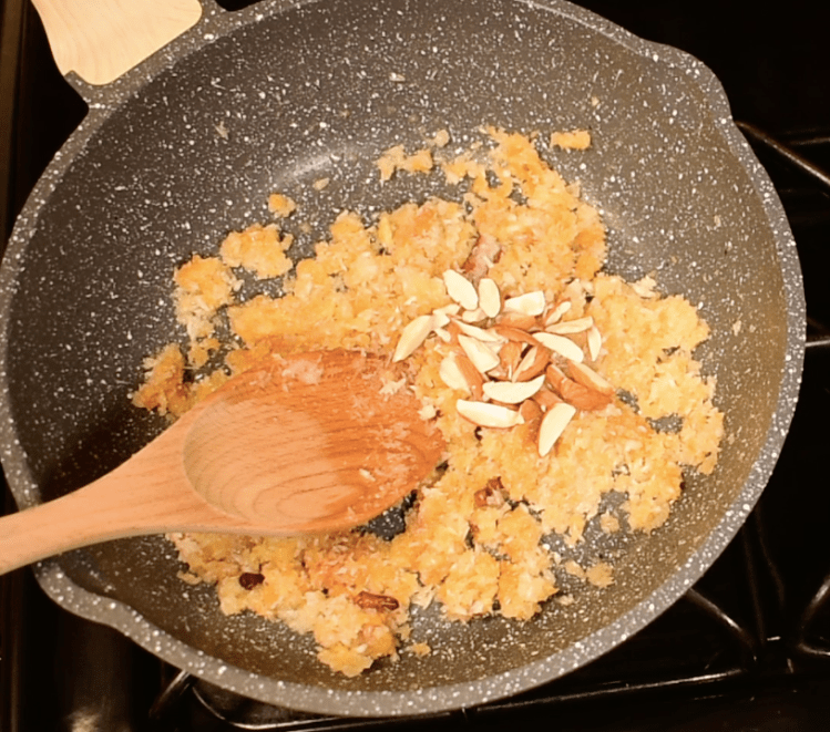 In a pan over medium flame, add 1 tbsp oil, sliced onion, saute till they become golden or translucent. Further add shredded coconut saute for a few min then add poppy seeds and saute till coconut becomes golden. Turn off the flame. Keep aside and let it cool.
